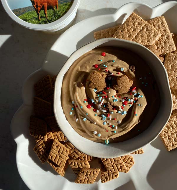 If you’re looking to impress guests, Santa Cookies are the ultimate treat. Made with Maple Hill Salted Butter, they’re rich, soft and full of festive spirit. For a unique twist, try Gingerbread Dip, featuring vanilla Greek yogurt made with 100% grass-fed organic milk.